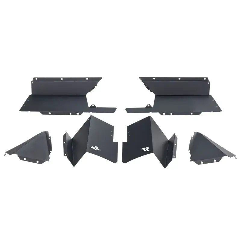 Rugged Ridge Aluminum Inner Fender Liners are a crucial element to building your off-road beast. Crafted from lightweight 14-gauge aluminum, CNC laser cut and bent for a perfect fit, these inner fenders protect your Jeep from mud and debris and look phenomenal doing it. Designed to work with trimmed OE flares and most aftermarket fenders, these inner fender liners offer maximum coverage while giving you that additional clearance you’re looking for when running bigger tires. Engineered to offer protection that far surpasses those flimsy factory liners with a durable satin black powder coated finish makes sure things remain stunning, even under layers of mud & muck. Rugged Ridge Aluminum Inner Fender Liners install easily using factory mounting locations with no drilling required. Stainless Steel mounting hardware is included.