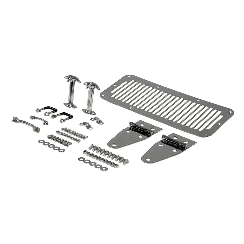 This stainless steel 9-piece hood kit is constructed of prime 304 stainless steel that has been polished to a mirror finish. 304 stainless steel is virtually rust proof guaranteeing that these parts will stand the test of time. All hardware is also constructed of stainless steel so the polished look you are going for is complete. Rugged Ridge offers the most complete line of stainless accessories so you can truly customize the look of your vehicle. When you want the best, look to Rugged Ridge Stainless Accessories!