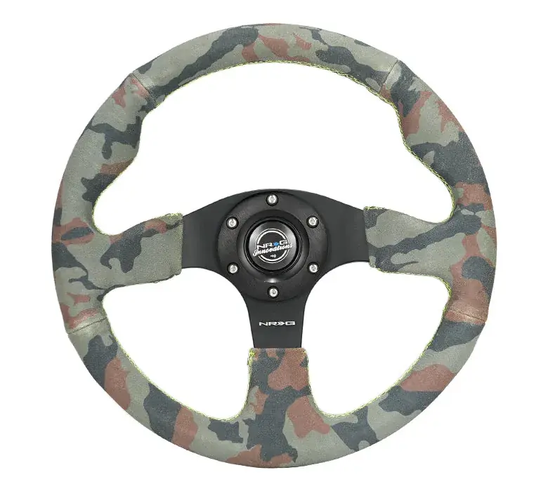 Don’t Miss Out NRG NRG Reinforced Steering Wheel (320mm) Sport/Suede Steering Wheel w/ Camo Pattern & Green Stiching
