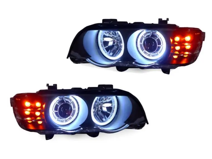 BMW E53 P53 Black Angel Projector DEPO Headlight W/ Amberled Corner+Uhp Led Ring