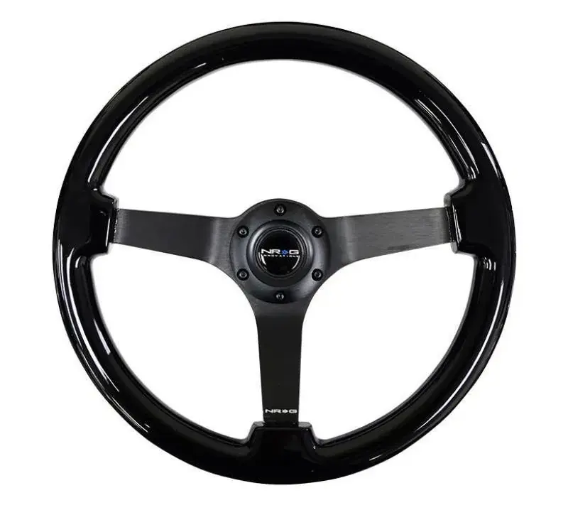 NRG Reinforced Steering Wheel Classic Wood Grain (350mm / 3in. Deep) Matte Black Solid 3-Spoke