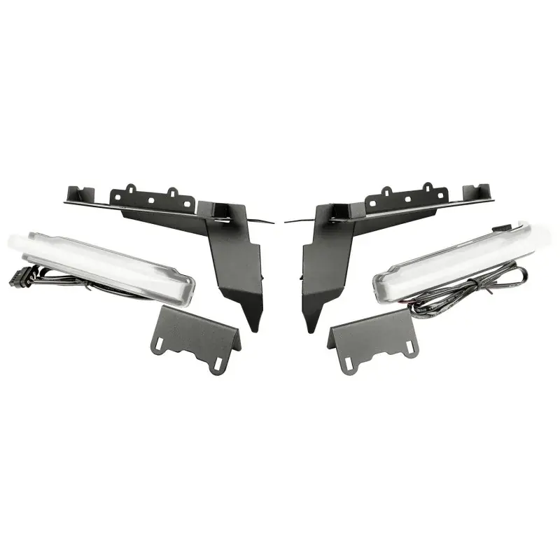 Modifying JL flares for off-road is easy and the look is nothing short of heroic with the Rugged Ridge Fender Chop Brackets. By removing the bulky factory fender light assembly, you’ll have greater clearance for oversized tires with nothing to get between you and that next obstacle. Sturdy steel chop brackets install easily and lend support for the front of the factory fender flare, adding a fearlessly aggressive new look. And since Jeeps don’t live solely off-road, radical dual-output DRL tubes provide a cool white running light by day that turns a vivid amber with your vehicles turn signals. Chop Brackets come in pairs, for Rubicon models, and feature a matte black powder coat finish that blends seamlessly with the factory flare finish. All installation hardware and instructions are included for a hassle-free install in record time.