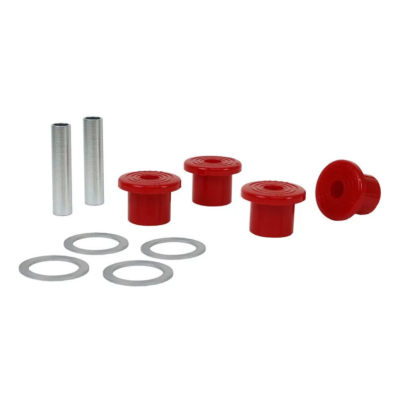 A critical service item for any leaf sprung vehicle. High kilometres and heavy load carrying causes excessive wear on rubber bushings. Nolathane’s signature red bushings are made tough and offer outstanding abrasion resistance, high load bearing capability (4WDs, utes and towing), flexibility, increased tensile strength and chemical resistance to oil, grease, ozone and weathering.