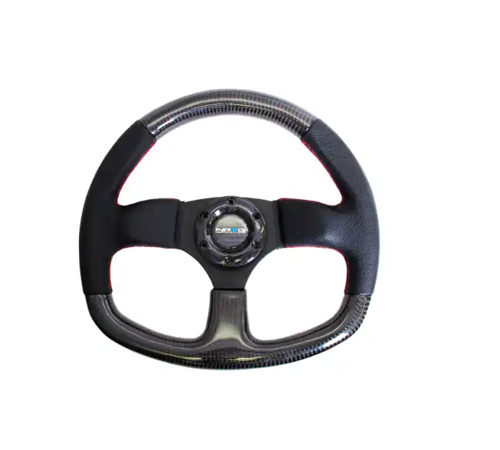 NRG Carbon Fiber Steering Wheel 320mm Flat Bottom w/Red Stitching Viral