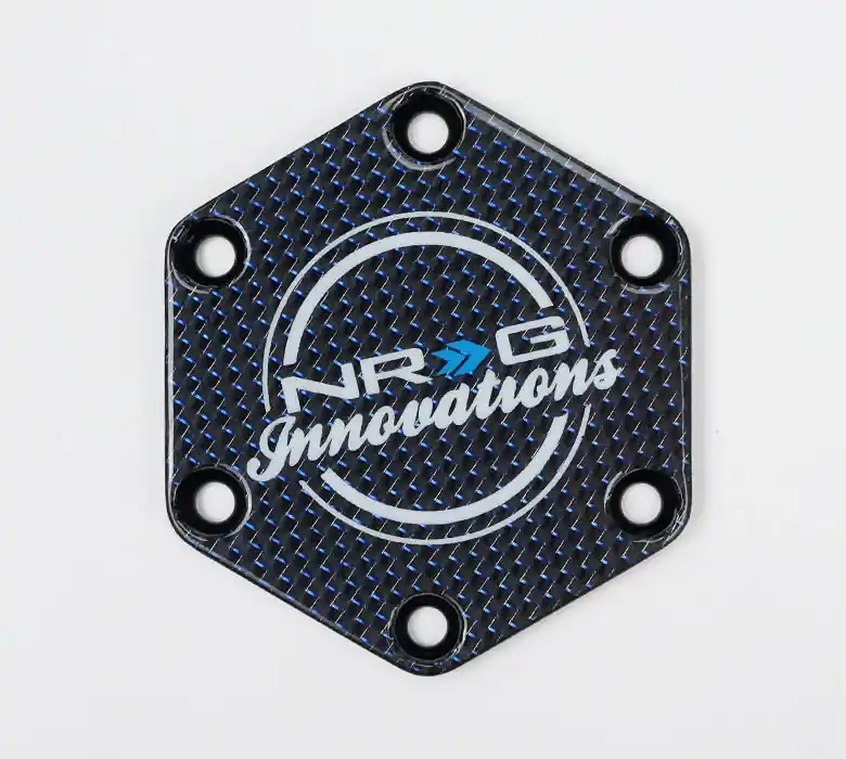 NRG Carbon Fiber w/ Blue Texalium Fabrics Horn Delete Button Circular Logo Front/ Back