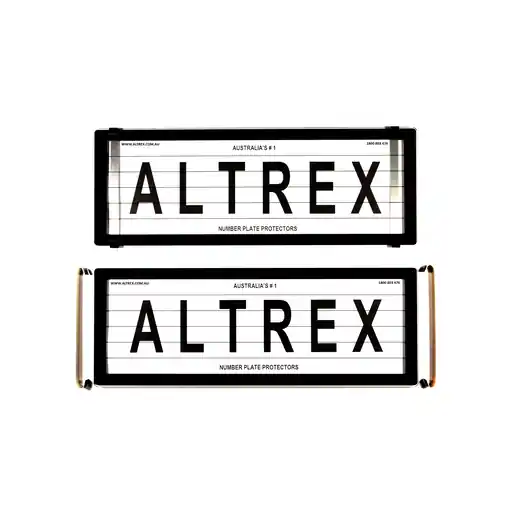 The Altrex Advanced Number Plate Protector is specially designed to enhance the look of your car while providing dependable guaranteed protection. Made from high impact 3mm extruded acrylic that withstands the harsh Australian sun the UV stabilised acrylic protects your number plates from showing signs of wear and ageing. Non-rusting powder-coated aluminium clips keep your number plate protector secured and looking good. The 3.2mm thick foam tape seal prevents rattling and ensures your protector is weatherproof. Legal in all states and covered by the Altrex 10 Year Guarantee.