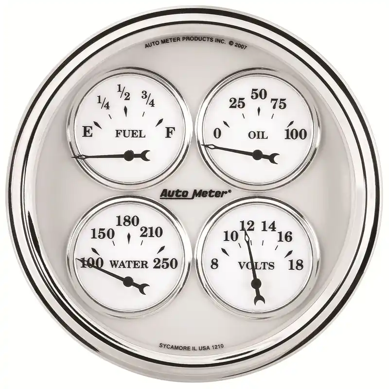 Home / Accessories / Price Cut Autometer 5″ Quad Gauge 100 PSI/100-250 °F/8-18V/240-33 ohm Old-Tyme White II