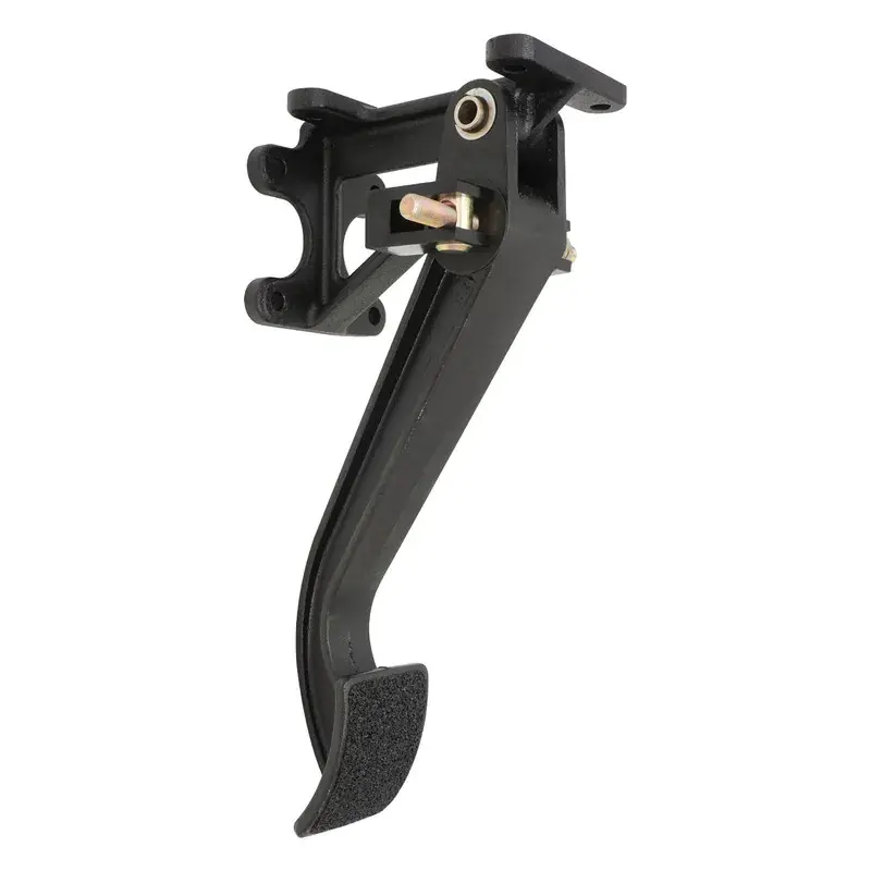 This pedal mounts two brake master cylinders with a bias balance bar and positions the master cylinders inside the firewall and away from engine heat. The pedal features all aluminum frame and arm construction with steel pivots, mounting studs, and an anti-skid pedal pad. Two ratios are offered to suit mounting and leverage requirements. Brake bias can be adjusted via balance bar. End user needs to calculate master cylinder bore size based on caliper piston or wheel cylinder size