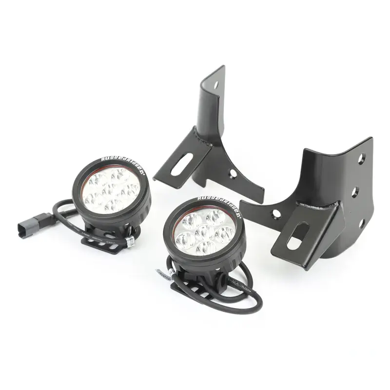 Looking for an alternate way to mount your lights during your off-roading adventures? This Rugged Ridge windshield bracket LED light kit allows you to quickly and easily mount your LED lights to your factory windshield hinges, creating two great spots for off-road lighting. This easy to install kit includes two black powder coated windshield mounting brackets and two 3.5-inch round LED lights for optimal illumination on the trails. No drilling required.