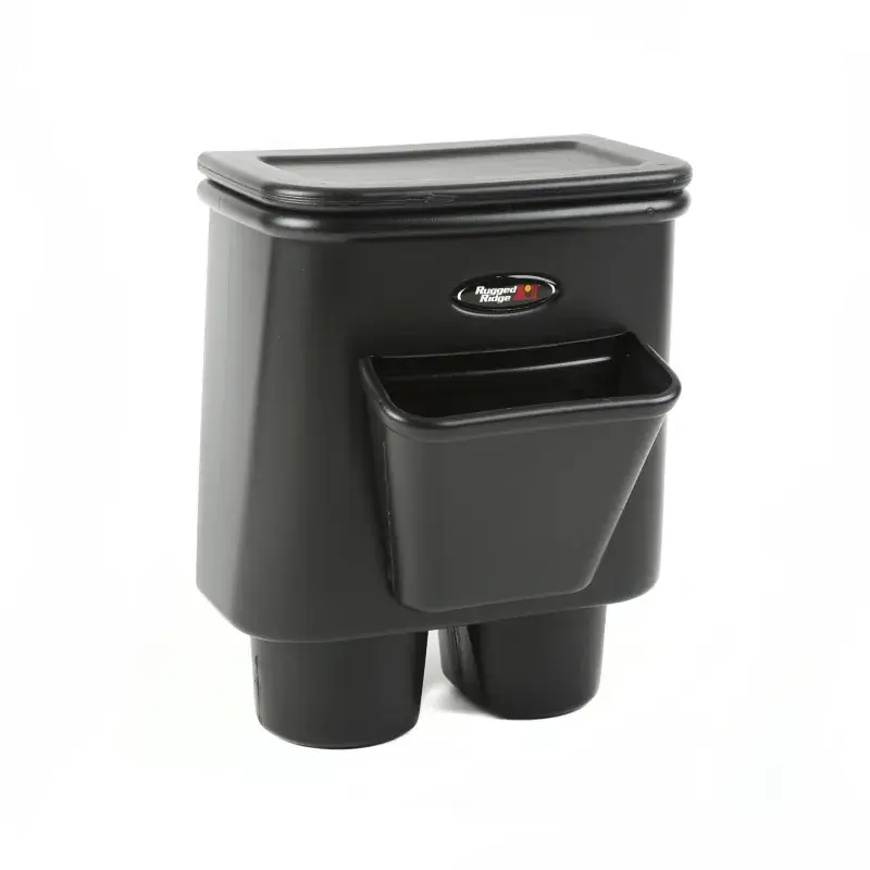 The perfect organization solution for your Jeep! The new Rugged Ridge Back Seat Organizer features two separate storage areas to organize wayward trash, toys, drinks, iPods and other clutter. Each organizer is designed to instantly fit into the rear cup holders of your 2007-10 Jeep Wrangler and includes a removable double walled lid. The large storage area will hold up to three 12oz. soda cans or two 17.9oz. water bottles with ice. The top lid can be easily removed creating a handy writing surface or small tray. The front tray can keep cell phones, iPods or other small items from rolling around the back seat. Easily removable to clean and empty, this truly is a must for your Jeep!