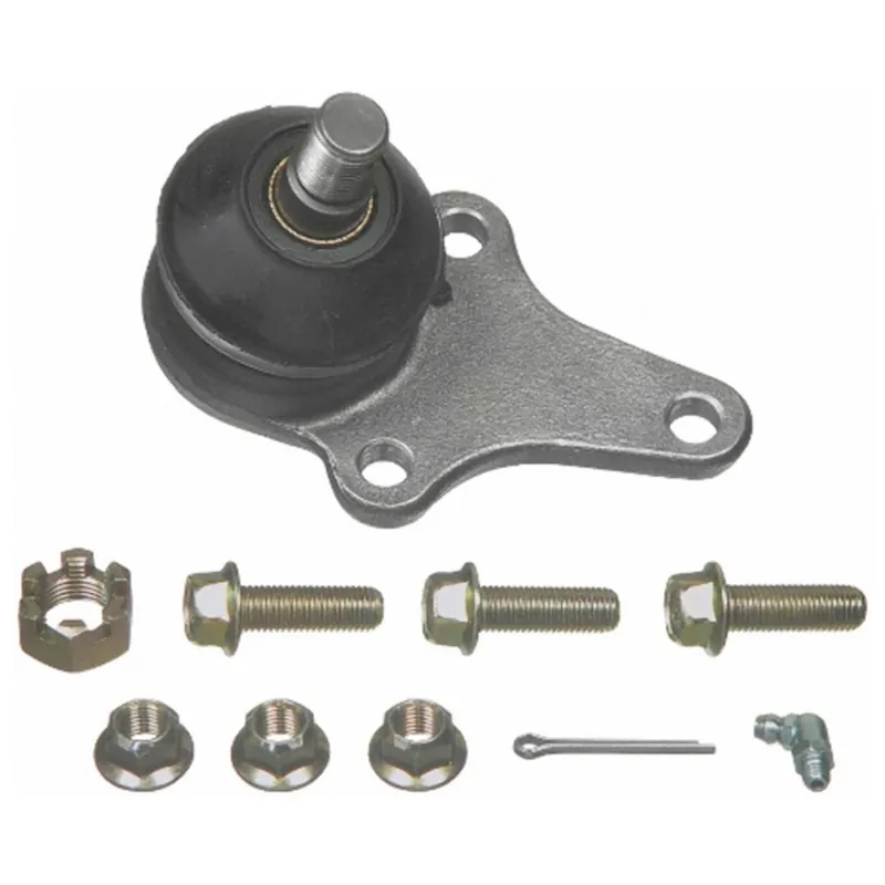 Package Contents: 1 Ball Joint, 1 Dust Boot, 1 Castle Nut, 1 Cotter Pin, 3 Bolts, 3 Nuts, 3 Lock Washers, 1 Grease Fitting