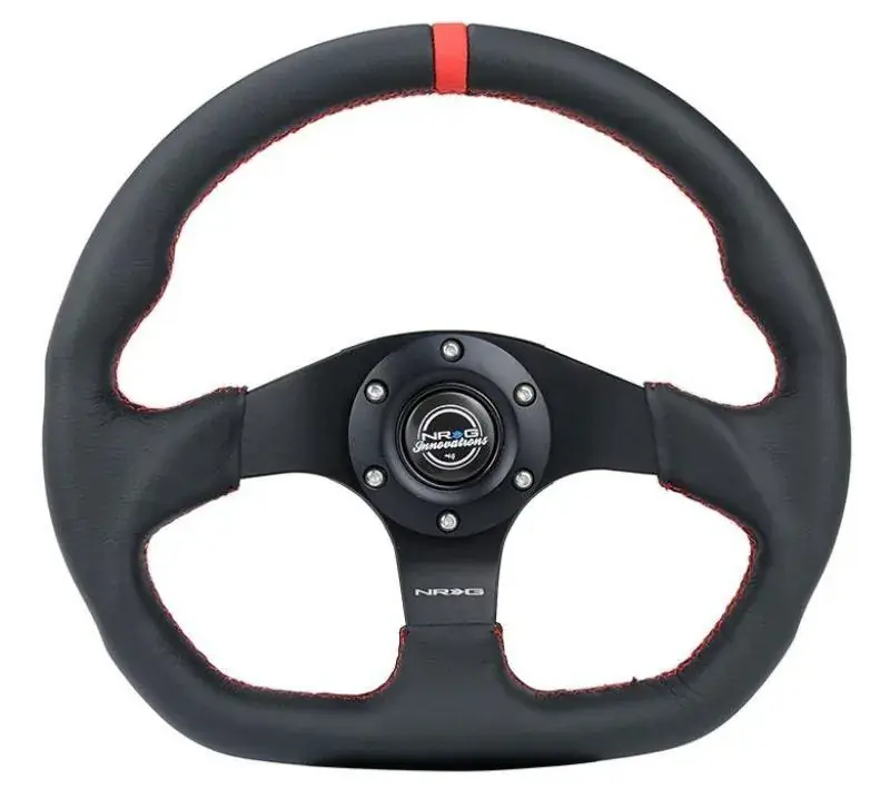 Secure Checkout NRG NRG Reinforced Steering Wheel (320mm) Sport Leather Flat Bottom w/ Red Center Mark/ Red Stitching