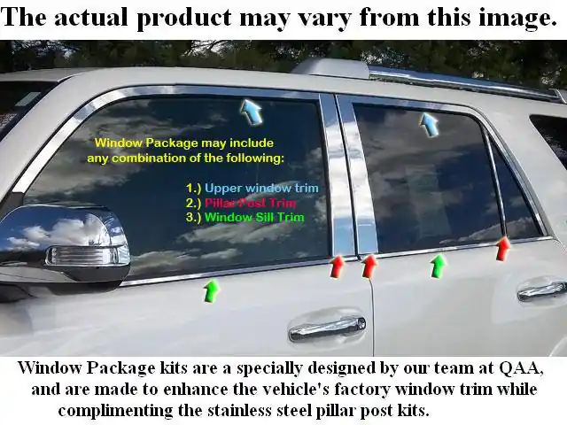 UPPER WINDOW and WINDOW SILL Accessory Trim is pre-formed for each vehicle model from a Highly Polished Stainless Steel, with a full coverage 3M acrylic foam adhesive backing to enhance the look of your vehicle. All of our stainless steel products are created from inception to packaging by our team of professionals, on location in Westford, Mass. Upper Window and Window Sill Trim is polished to a mirror shine, giving it a CHROME look. The polished surfaces are protected by a plastic film to be removed after installation.All of QAA’s Stainless Steel Trim products are easy to install with a ‘peel and stick’ application of the pre-applied 3M tape on every piece; no drilling, cutting or alterations are required. The bond is water tight and will last a lifetime.