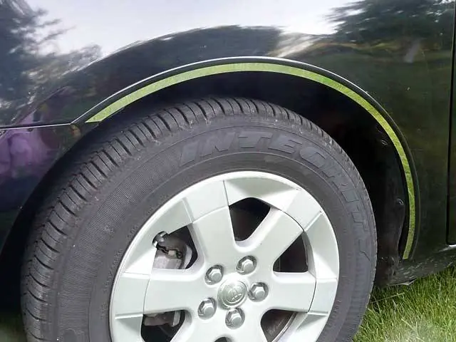 WHEEL WELL FENDER Accessory Trim has a very low profile against the vehicle. A rubber gasket edging is applied to the upper edge to provide added visibility and protection. Wheel Well Fender Accessory Trim is pre-formed for each model from a Highly Polished Stainless Steel, with a full 3M acrylic foam adhesive backing to enhance the look of your vehicle.