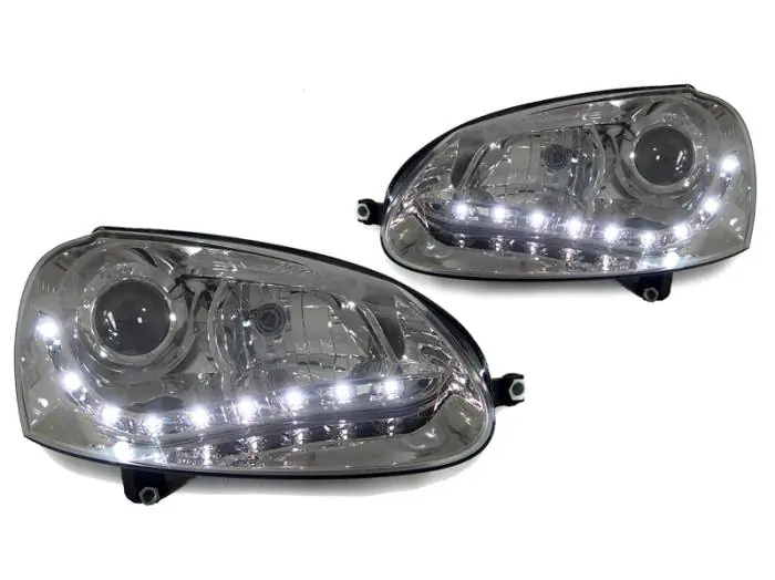 Volkswagen Golf 5/GTi Chrome Projector R8 Led DEPO Headlight -D2S 12 Pin Xenon