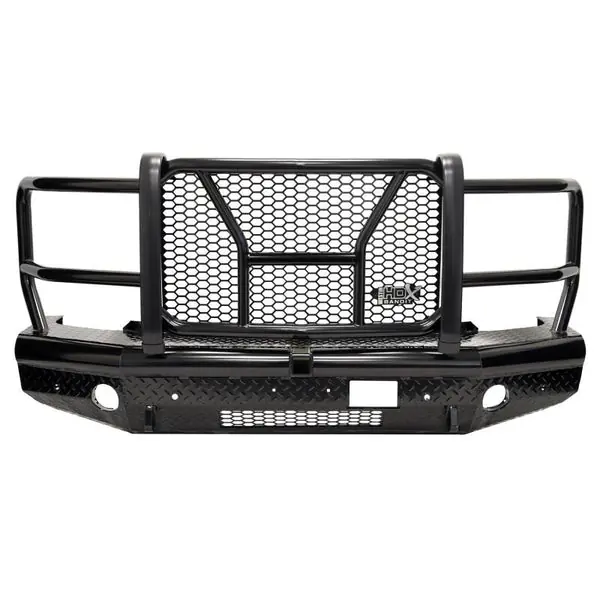 Westins HDX Bandit Bumper combines a heavy duty diamond plate steel bumper constructed of schedule 40 steel pipe with a stylish grille guard featuring 2in. diameter outer wraparound wings and 2 3/4in. wide upright rubber strips. Designed to protect headlights, grille, hood and front fenders from road hazards, debris and wildlife damage. Features a stylish metal honeycomb mesh screen, which allows maximum airflow to the intercooler or radiator area while accenting the front end styling with a clean and rugged look. Removable mesh screens allow for factory camera and adaptive cruise control options available on some late model Ford applications. HDX Bandit Bumper includes a built-in 2in. receiver hitch and (2) heavy duty 9,500 lbs bow shackle mounts, capable of delivering multiple towing options. Compatible for factory fog lamps or LED post mount lights. In addition, some late model Ram and Chevrolet applications feature provisions for factory parking sensors. Bolt-on installation with hardware and mounting brackets included. Available in black powder coat finish.
